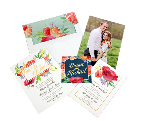 With our industry leading print technology, we love adding digital foil, spot UV, and soft touch laminations to our invitation products.